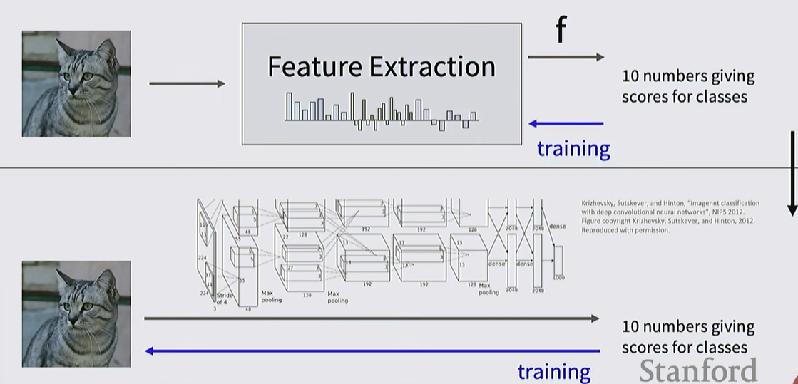 Traditional Approach (Feature Extraction): Features were extracted using human-engineered functions (e.g., Color Histograms, HOG) and then fed into a classifier.